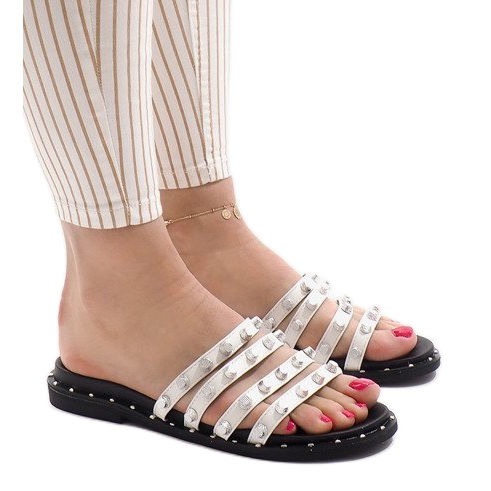 Inna marka Weiße Hausschuhe mit LK-2802 Nieten