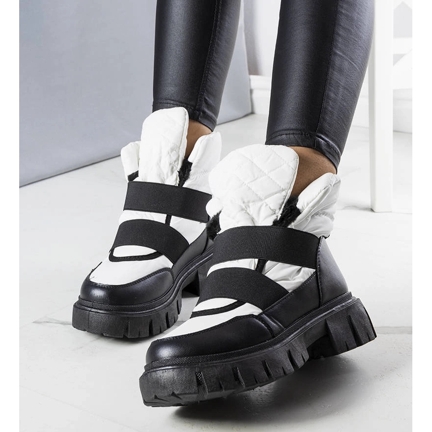 Praktische und modische Schneestiefel für Frauen - perfekt für kalte Tage. Die Gleitstruktur und das dicke Fell im Inneren garantieren Wärme und Komfort sowie eine hohe, 5 -cm -Plattform und Gummi -Sohle von einem kalten Boden und bieten bei jedem Schritt Komfort. Die kontrastierende schwarze Sohle betont das moderne, minimalistische Erscheinungsbild in Weiß/Schwarz.