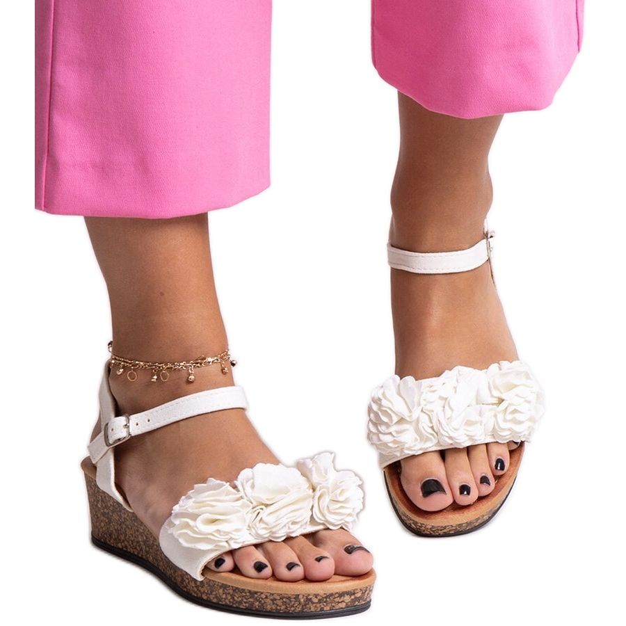 Inna marka Weiße Keilsandalen mit Meaza-Blumen