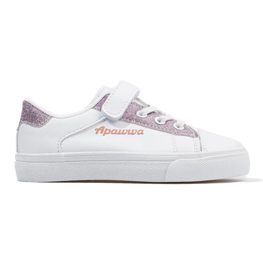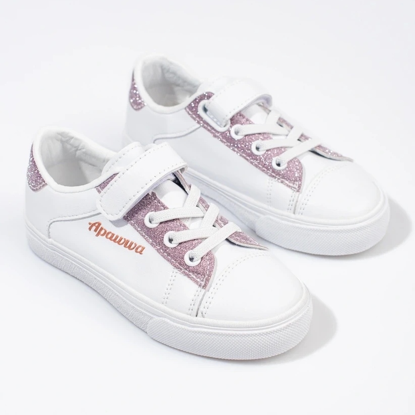 Inna marka Weiße Kinder-Sneaker mit rosa Glitzer