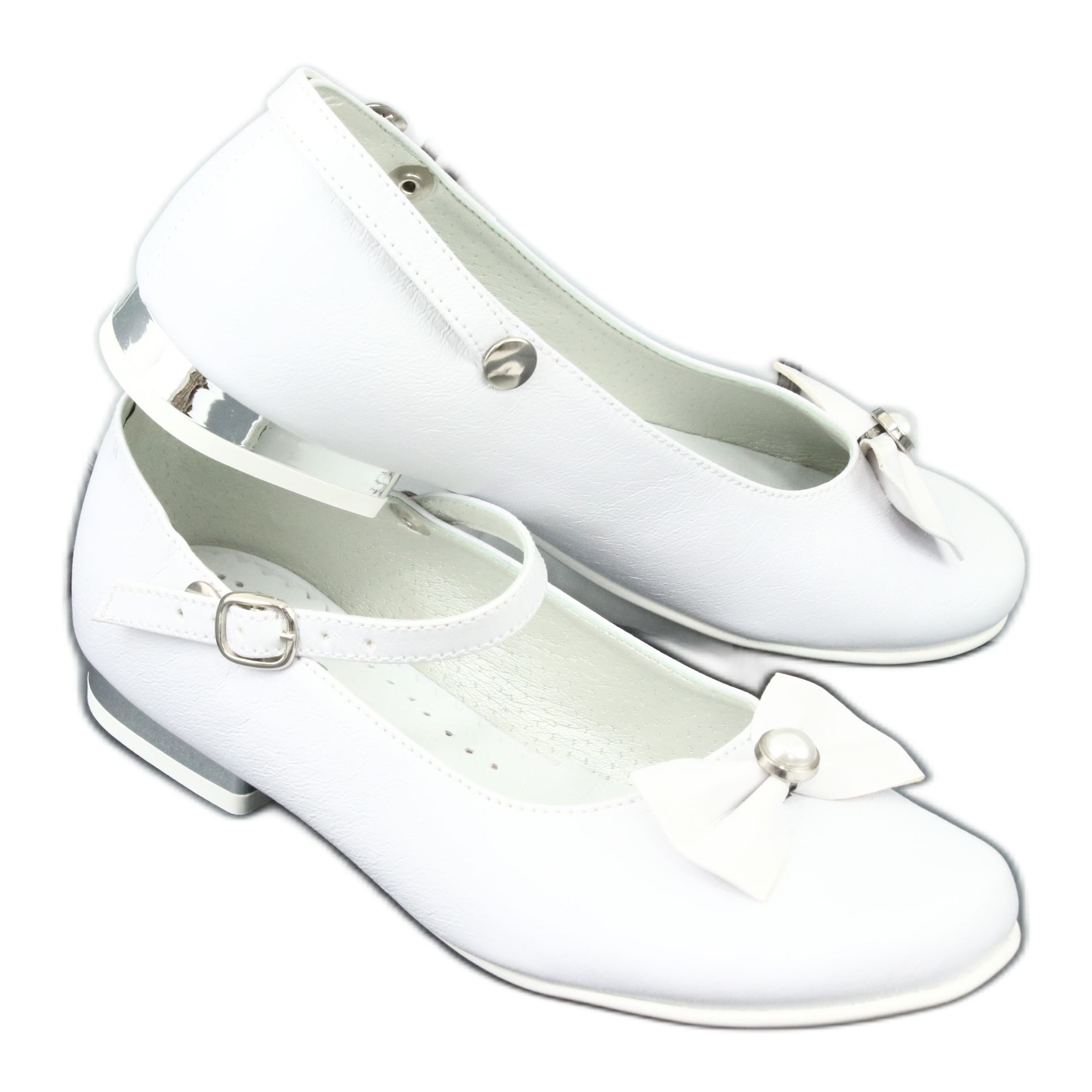 Miko Children's Communion Ballerinas 806 - Weiß mit einem Bogen