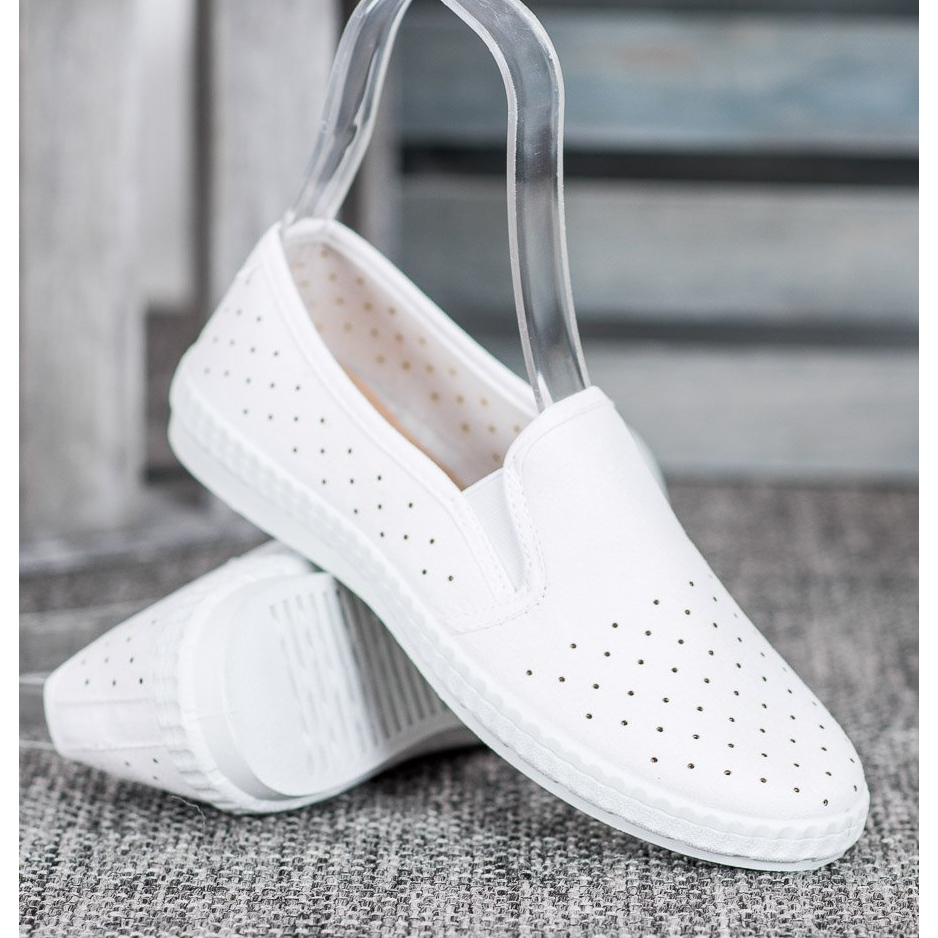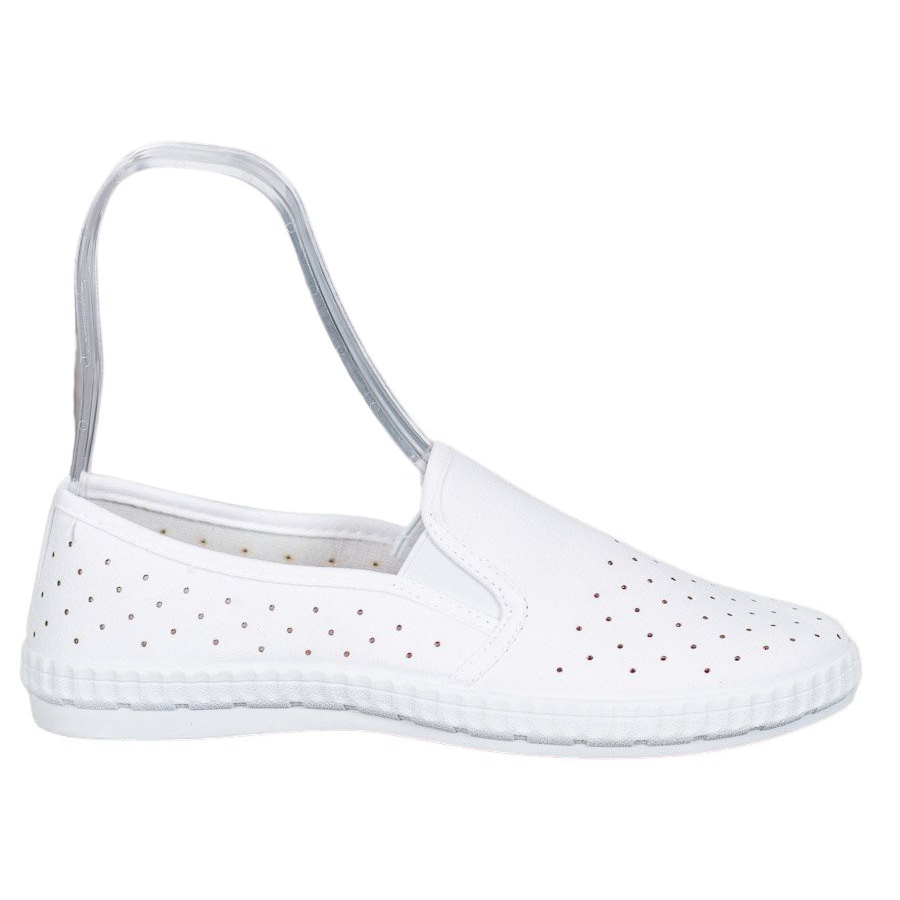 Das Obermaterial der Slipper besteht aus strapazierfähigem weißem Stoff, was ihnen einen universellen Charakter verleiht. Das durchbrochene Muster sorgt für ausreichende Belüftung und hält Ihre Füße auch an wärmeren Tagen frisch. Die abgerundete Spitze und der eingearbeitete, weiche Absatz garantieren ein angenehmes Tragegefühl und das Slip-On-System erleichtert das Anziehen der Schuhe.