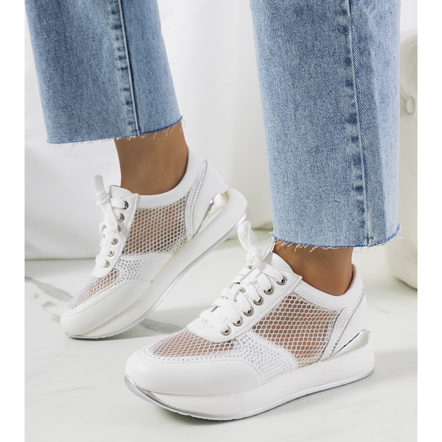 Entdecken Sie das perfekte Schuhwerk für Sommertage – weiße Ilkay-Sneaker, die modernes Design mit außergewöhnlichem Komfort verbinden. Die aus hochwertigem Faux-Wildleder gefertigten Sportschuhe zeichnen sich durch auffällige Mesh-Einsätze und eine dezente Strassverzierung aus, die ihnen einen einzigartigen Charakter verleiht.