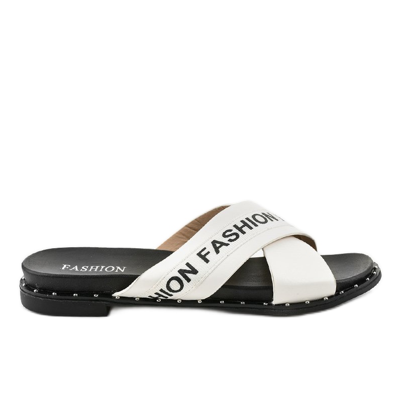 Weiße zehenstegsandalen mit der modischen Aufschrift „Fashion“ passen perfekt sowohl zu alltäglichen als auch zu eleganteren Outfits. Sie eignen sich perfekt für den täglichen Gebrauch und sind dank ihres universellen Charakters eine gute Wahl für alle Gelegenheiten.