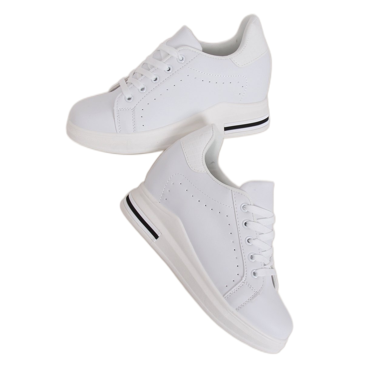 Inna marka Weiße MY-0367 Weiße Sneakers auf einem versteckten Keilabsatz