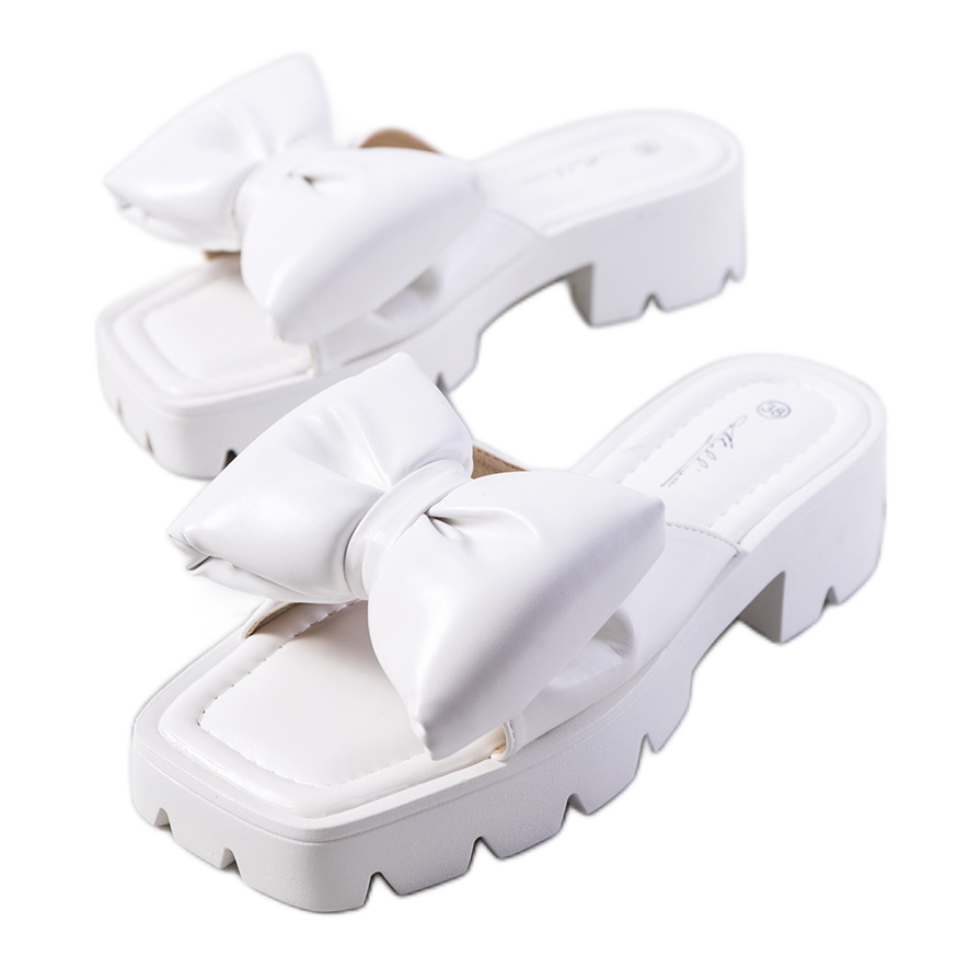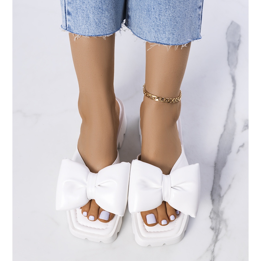 Inna marka Weiße Pantoffeln auf der Traktorsohle des Platt