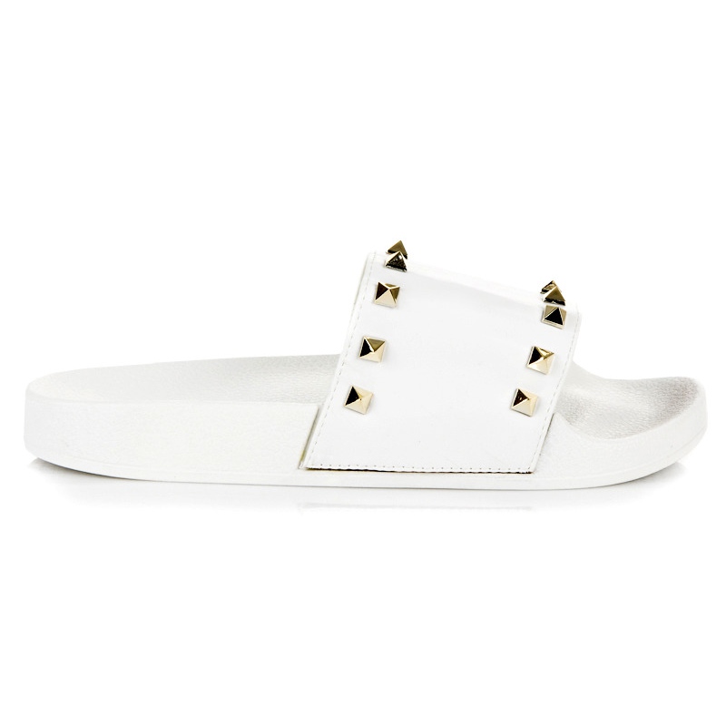 Inna marka Weiße Pantoffeln mit Strasssteinen