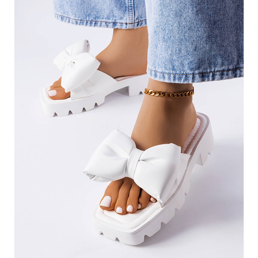 An warmen Tagen legen wir Wert auf Komfort und einen modischen Look. Genau das zeichnet Seastar White zehenstegsandalen mit Bossé-Traktorsohle aus – Schuhe, die die Quintessenz des Sommers sind und gleichzeitig raffinierten Stil und Komfort bieten. Diese Slip-On-Pantoletten mit offener Zehenpartie sind eine großartige Wahl für Frauen, die Funktionalität mit modischer Ästhetik verbinden möchten.