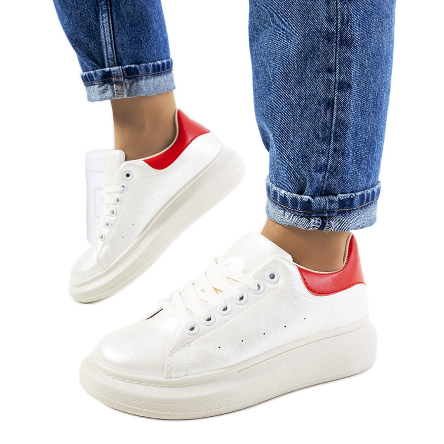 Details: Weiße perlmuttfarbene Neera-Sneakers für Damen rot