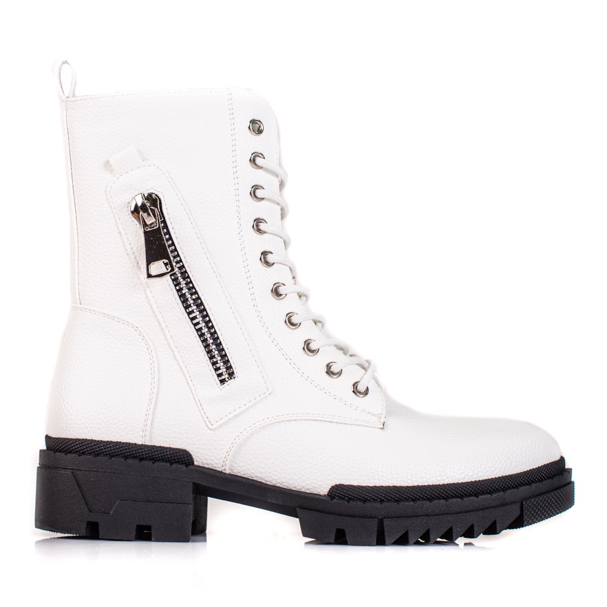 Wir präsentieren einzigartige weiße Potocki-Arbeiterstiefel für Damen, die lässigen Stil mit rockigem Charakter verbinden. Diese Stiefeletten eignen sich perfekt für die Herbst-/Wintersaison und sind eine gute Wahl für Frauen, die sich moderne und funktionale Lösungen für ihre Garderobe wünschen.
