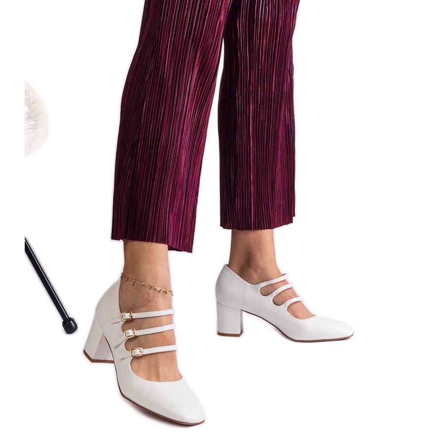 Inna marka Weiße Pumpen auf dem Pfosten mit dekorativen Schnallen