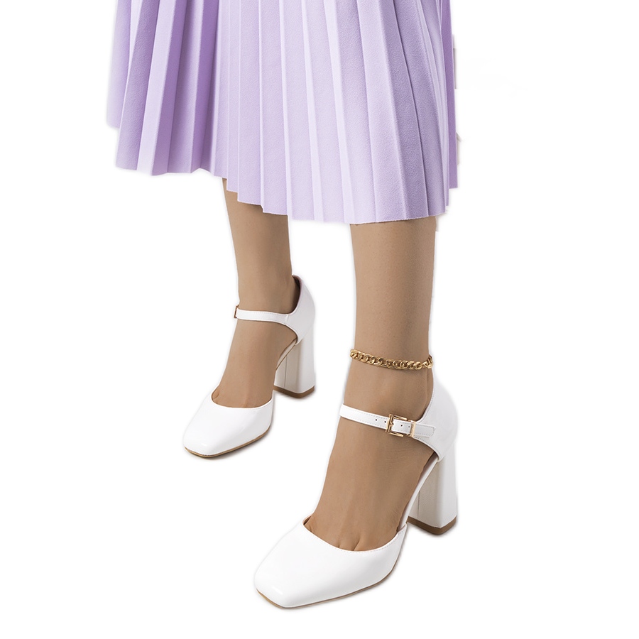 Weiße Clement-Pumps mit hohen Absätzen sind in dieser Saison ein absoluter Hit und sollten in keiner Damengarderobe fehlen. Diese eleganten Sandalen aus ökologischem Lackleder ziehen nicht nur die Blicke auf sich, sondern sorgen auch den ganzen Tag über für Tragekomfort.