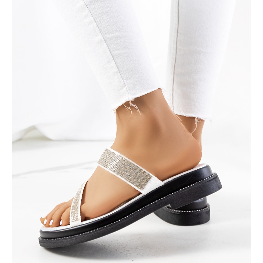 Entdecken Sie die weißen Plateau-zehenstegsandalen von Ossel, die Ihr Alltags-Styling perfekt ergänzen! Dieses Modell ist für Frauen gedacht, die Komfort und Eleganz schätzen. Die weiche Innensohle sorgt für ein einzigartiges Erlebnis und das mit Zirkonen verzierte Obermaterial und die Sohle werden mit Sicherheit ein Blickfang sein und jedem Outfit Charme verleihen.