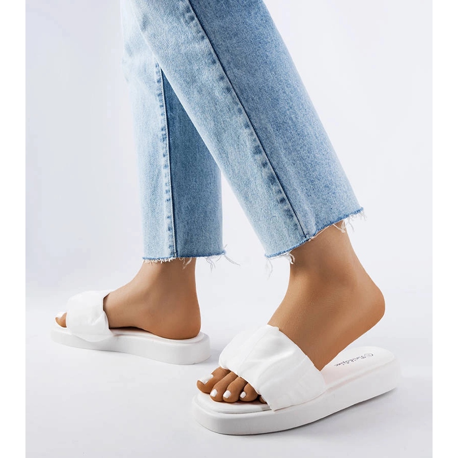 Inna marka Weiße Slider mit Boulevard-Rüschen verziert
