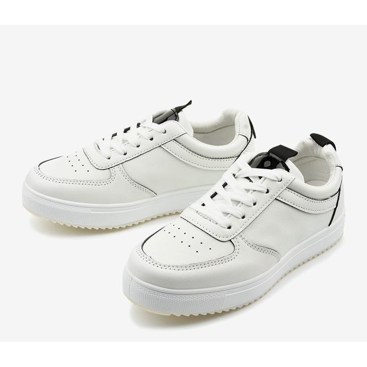 Weiße Sneaker mit schwarzen Einsätzen KK-203 sind die perfekte Wahl für Frauen, die Wert auf Komfort und einen modischen Look legen. Das aus hochwertigem Faux-Wildleder gefertigte Schuhwerk zeichnet sich nicht nur durch sein elegantes Design, sondern auch durch seine Funktionalität aus. Schwarze Akzente auf dem weißen Obermaterial verleihen ihnen einen modernen Charakter und die lackierte Oberfläche sorgt für zusätzliche Attraktivität.