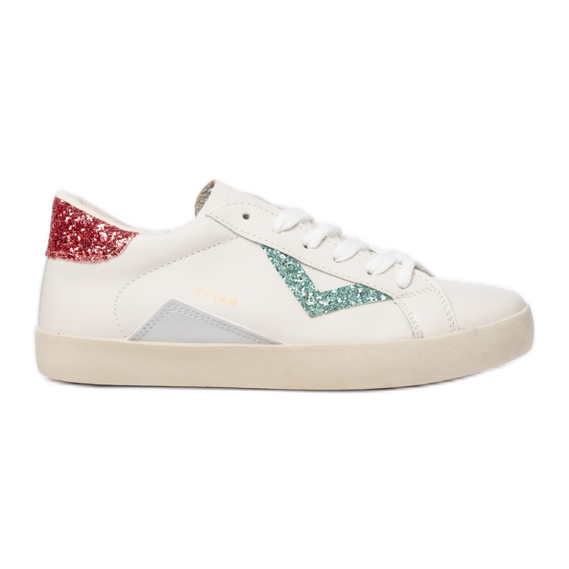 Weiße Turnschuhe für Frauen mit Brokat-Pink-Green-Einsätzen sind die perfekte Wahl für Frauen, die in alltäglichen Stilisationen Stil und Komfort schätzen. Diese einzigartigen Schuhe aus hochwertigem ökologischem Leder kombinieren eine klassische weiße Farbe mit ausgefallenen Brokatakzenten in Grün- und Rosa -Schatten. Dies ist eine perfekte Kombination, die Sie in der Menge hervorhebt.