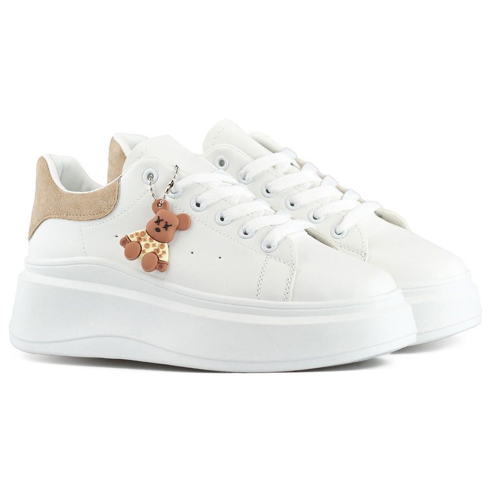 Wetten Sie auf modische weiße Sportschuhe auf einer dicken Sohle mit Beige Bear und genießen Sie eine Kombination aus Stil, Komfort und Funktionalität!