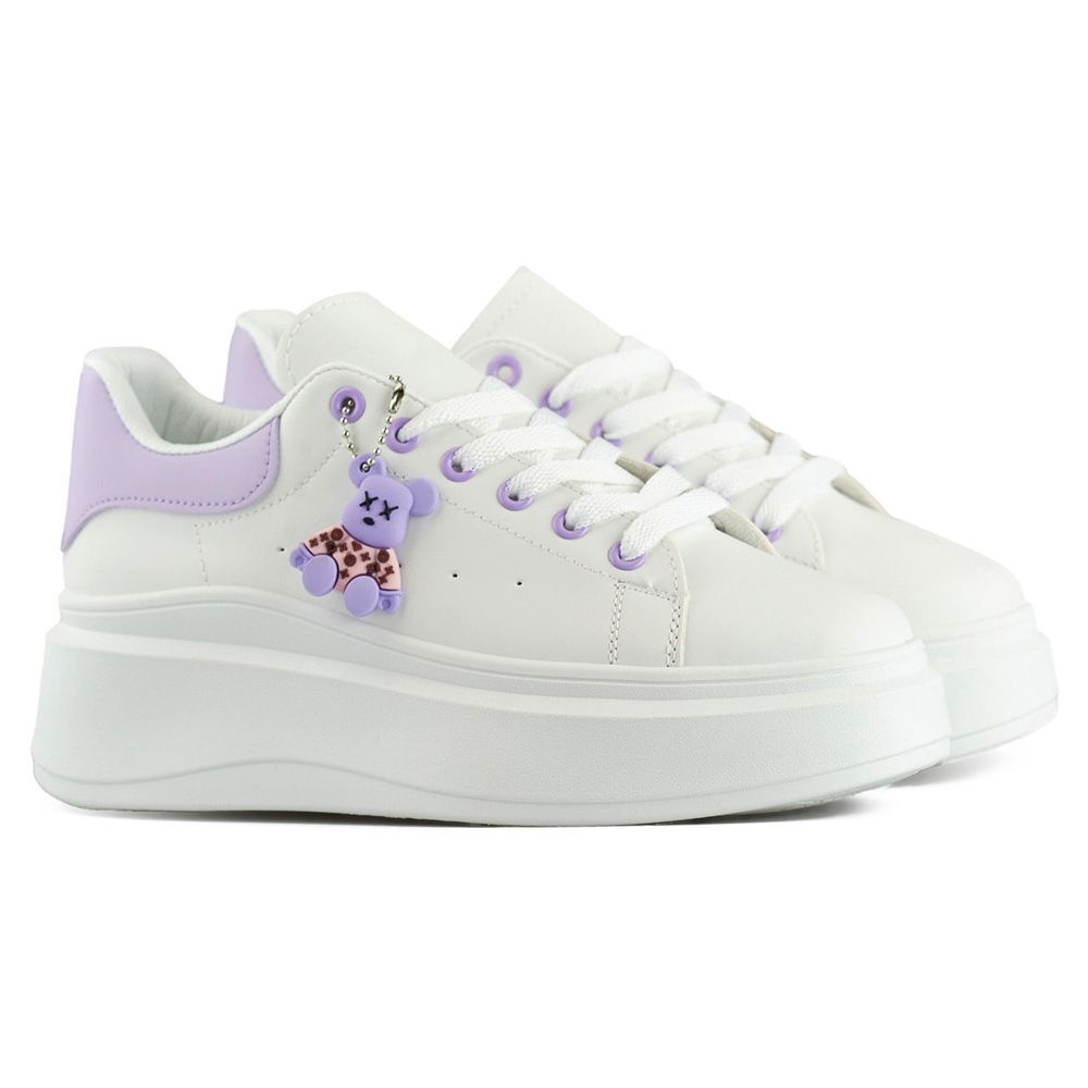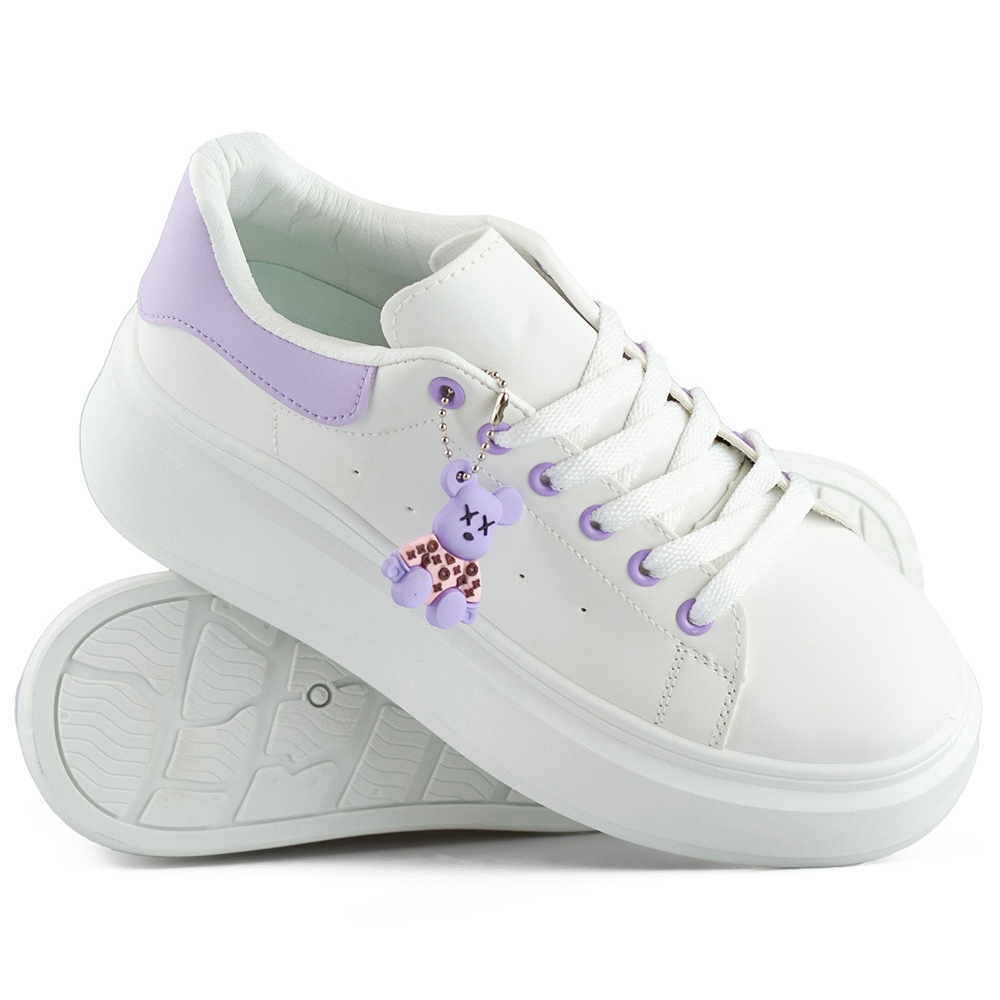 Inna marka Weiße Sportschuhe mit dicker Sohle und lila Teddybär