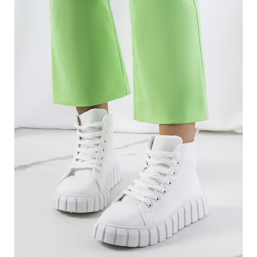 Wir präsentieren weiße Horizo-Plateau-Sneaker der Marke BM, die zu einem unverzichtbaren Bestandteil Ihrer Sommergarderobe werden. Dieses Modell zeichnet sich durch einen modischen, hohen Schnitt aus, der jedem Styling einen einzigartigen Charakter verleiht. Dank der soliden, vier Zentimeter hohen Plattform erreichen Sie nicht nur Komfort, sondern auch eine einzigartige Optik.