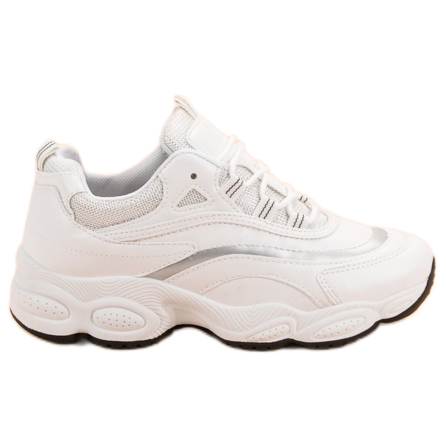 Weiße Kayla-Sneaker haben eine niedrige Höhe, was sie für den täglichen Gebrauch äußerst bequem macht. Die runde Spitze und der Schnürverschluss sorgen für Eleganz und sorgen gleichzeitig für eine gute Passform am Fuß. Die Sohle aus synthetischem Material mit Profil garantiert guten Halt, der bei Aktivitäten äußerst wichtig ist.