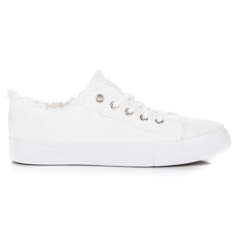 Weiße Sneakers aus hochwertigem Stoff sorgen den ganzen Tag über für Komfort. Ihre runde Spitze und der eingearbeitete, weiche Absatz garantieren Komfort und der Schnürverschluss sorgt für eine perfekte Passform am Fuß. Dank der Gummisohle mit Profil stellt jeder Regentropfen oder leichte Geländeunebenheiten kein Hindernis dar und Sie können einen sicheren Schritt genießen.