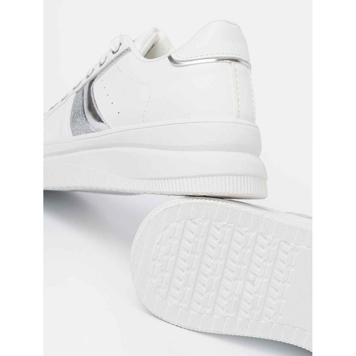 Shelvt Shelvt Weiße Turnschuhe mit einem metallischen silbernen Akzent