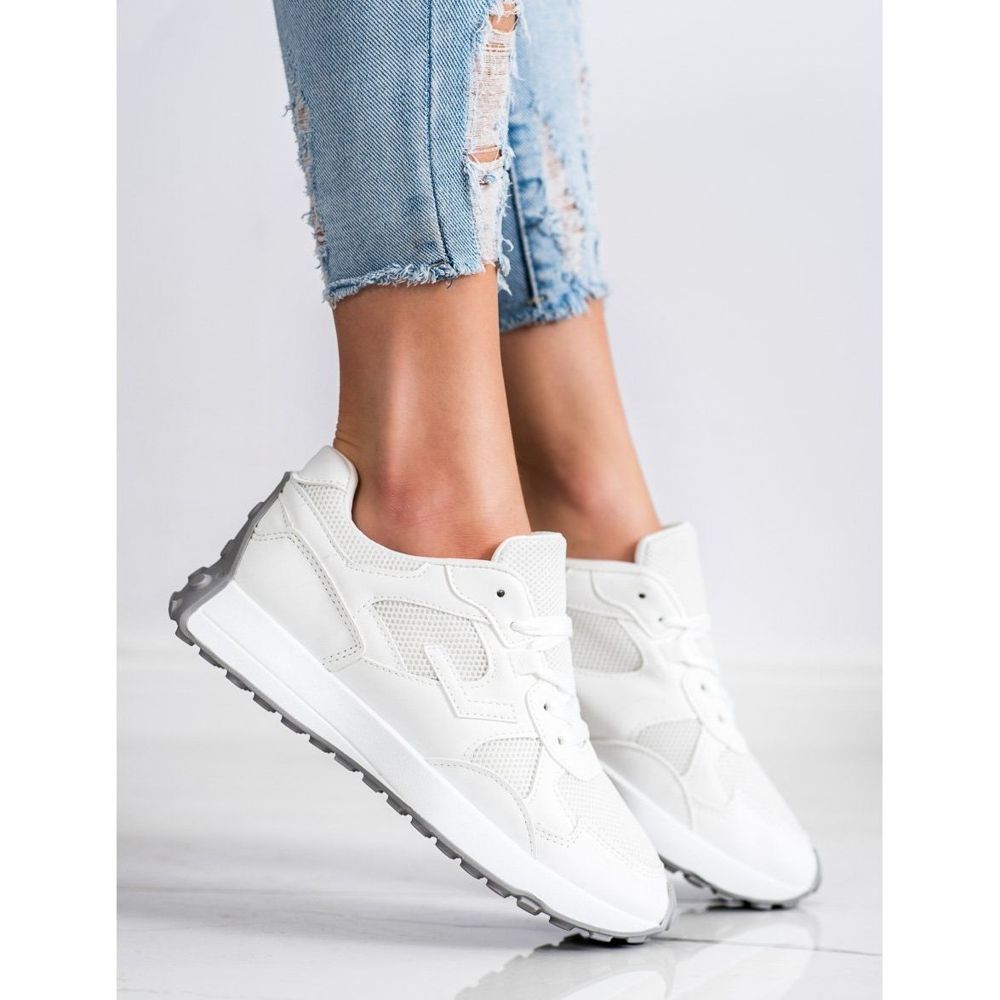 Weiße SHELOVET-Sneaker haben eine runde Spitze, die ihnen einen leichten und sportlichen Charakter verleiht. Die klassische Schnürung ermöglicht eine perfekte Anpassung an den Fuß und die Gummisohle mit Profil sorgt für guten Halt auf verschiedenen Untergründen.