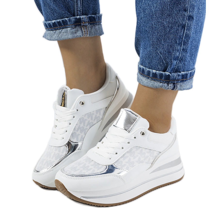 Moderne und universelle Turnschuhe Farnese sind eine Muss. Ein charakteristisches, kindempfindliches Sohle schlanker die Figur und fügt ein paar Zentimeter hinzu, ohne den Komfort aufzugeben. Ein glattes weißes Obermaterial mit silbernen Akzenten macht das Modell perfekt sowohl leichte Kleider als auch alltägliche lässige Stylisationen.