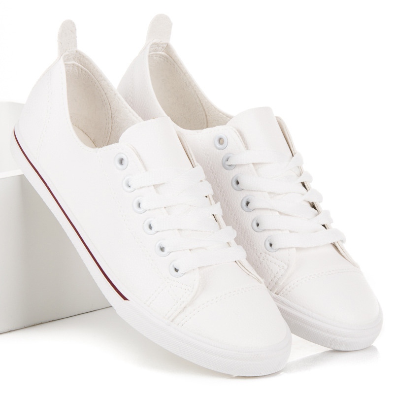 Die Innenseite der Schuhe ist mit Stoff gefüttert, was den Tragekomfort zusätzlich erhöht, und die bequeme runde Spitze ermöglicht eine freie Bewegung der Finger. Die Sneaker verfügen über einen Schnürverschluss, der eine perfekte Passform am Fuß ermöglicht. Dank der Plateauhöhe von 1,5 cm verleihen die Schuhe nicht nur jedem Schritt Leichtigkeit, sondern heben die Figur auch dezent an.