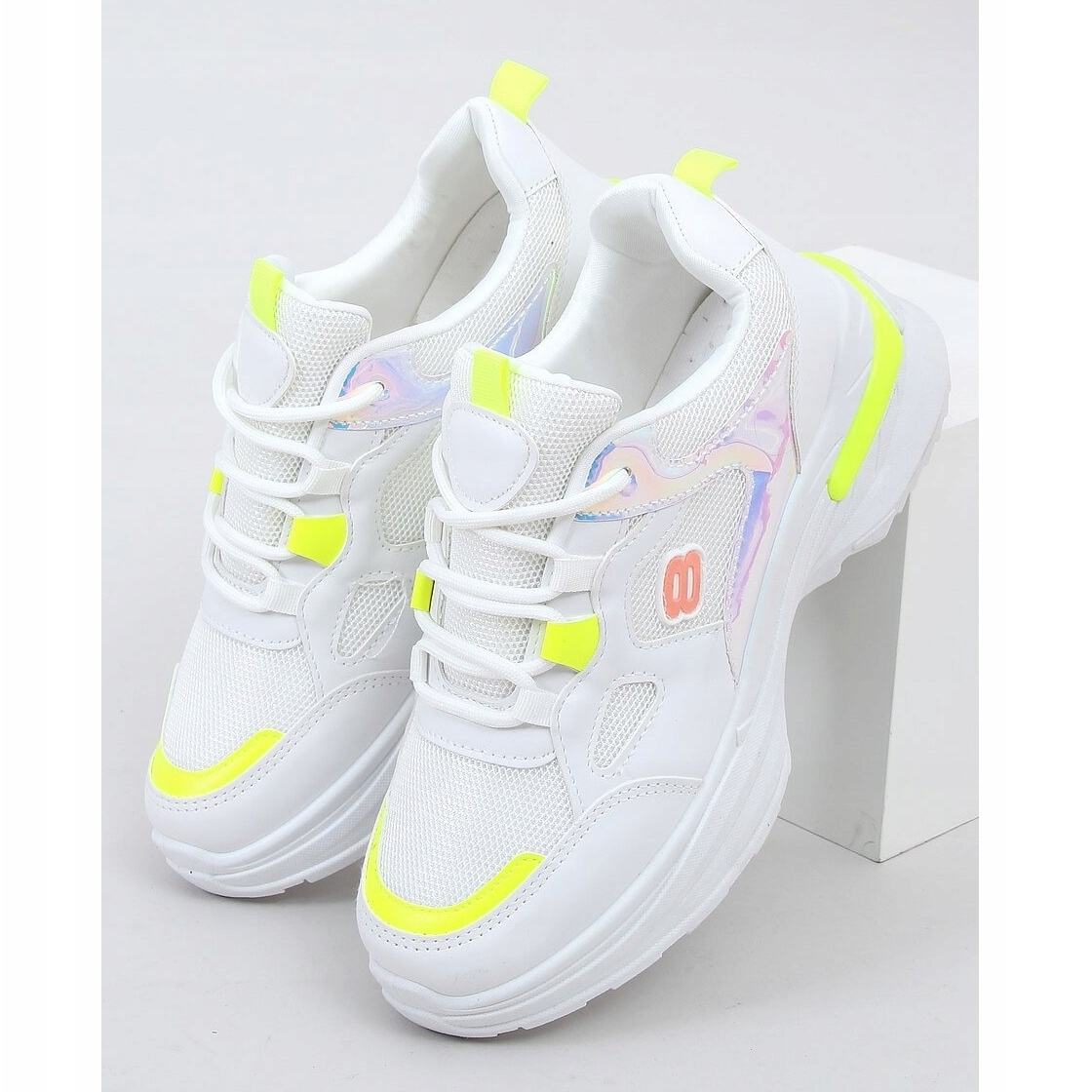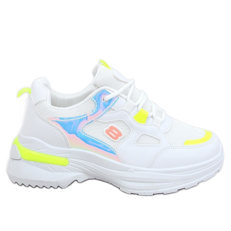 Entdecken Sie Mode und Komfort in einem! Die Damen-Sportschuhe HX-68 in Weiß und Gelb sind ein Angebot, das mit Sicherheit Aufmerksamkeit erregen wird. Dank der hohen Sohle, die Ihre Beine optisch verlängert, gewinnen Sie nicht nur einen stylischen Look, sondern auch ein paar Zentimeter mehr! Dieses Modell zeichnet sich durch holografische Accessoires aus, die ihm einen einzigartigen Charakter verleihen.