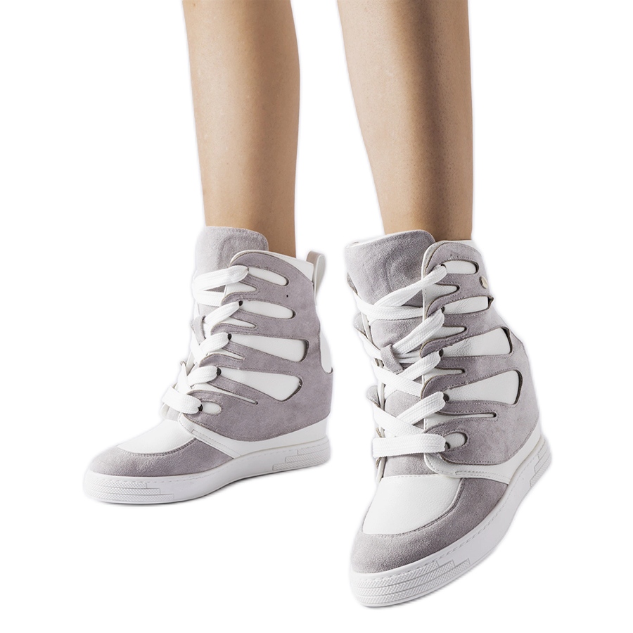 Inna marka Weiße und graue Pantaleone-Sneaker mit Keilabsatz