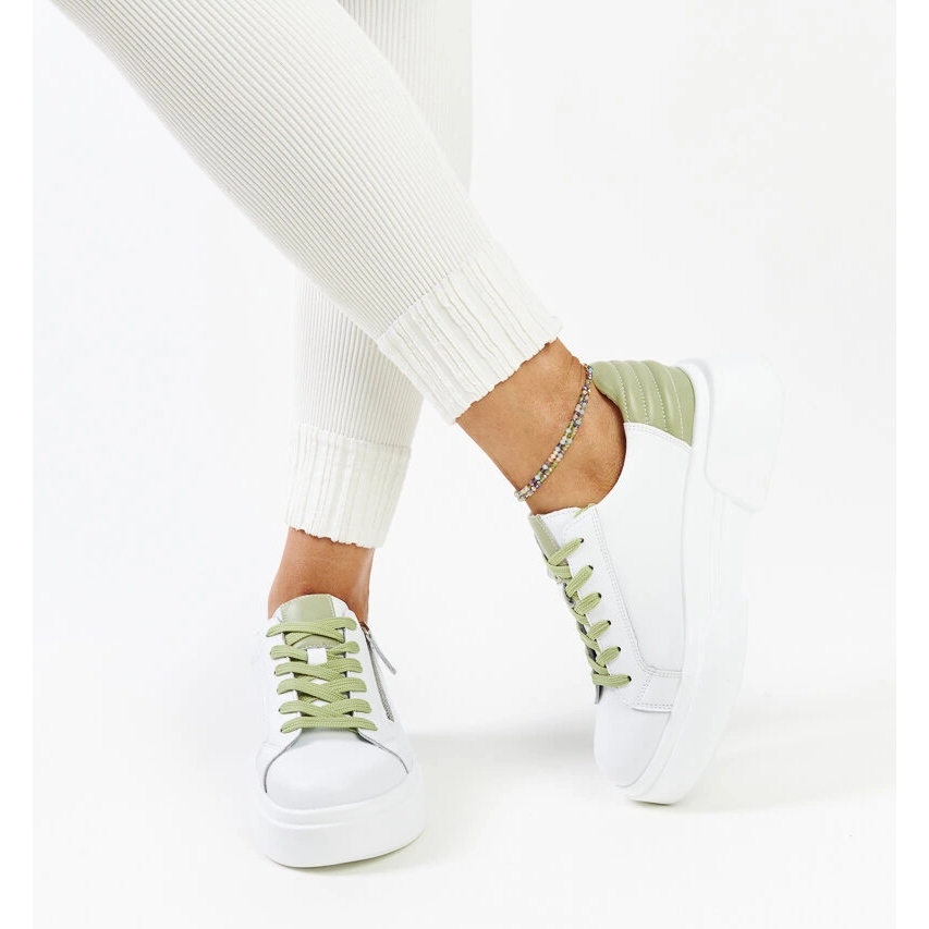 Inna marka Weiße und grüne Atyaf-Ledersneaker