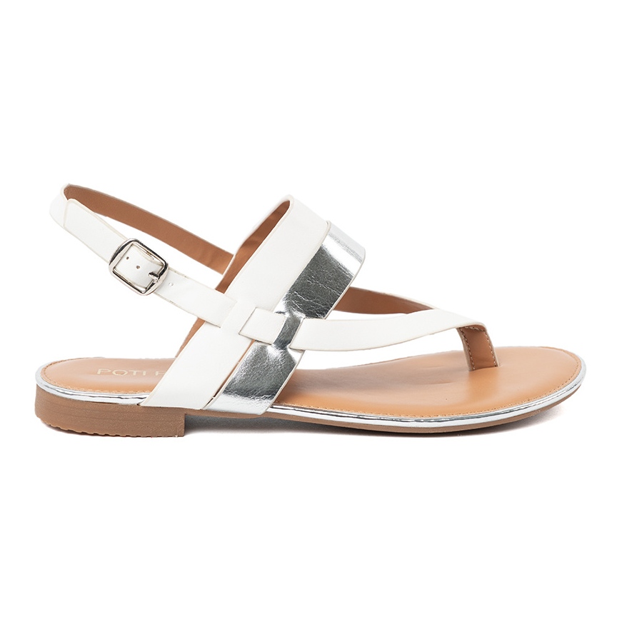 Details: Shelvt Weiße und silberne Sandalen mit einem breiten Gürtel mehrfarbig
