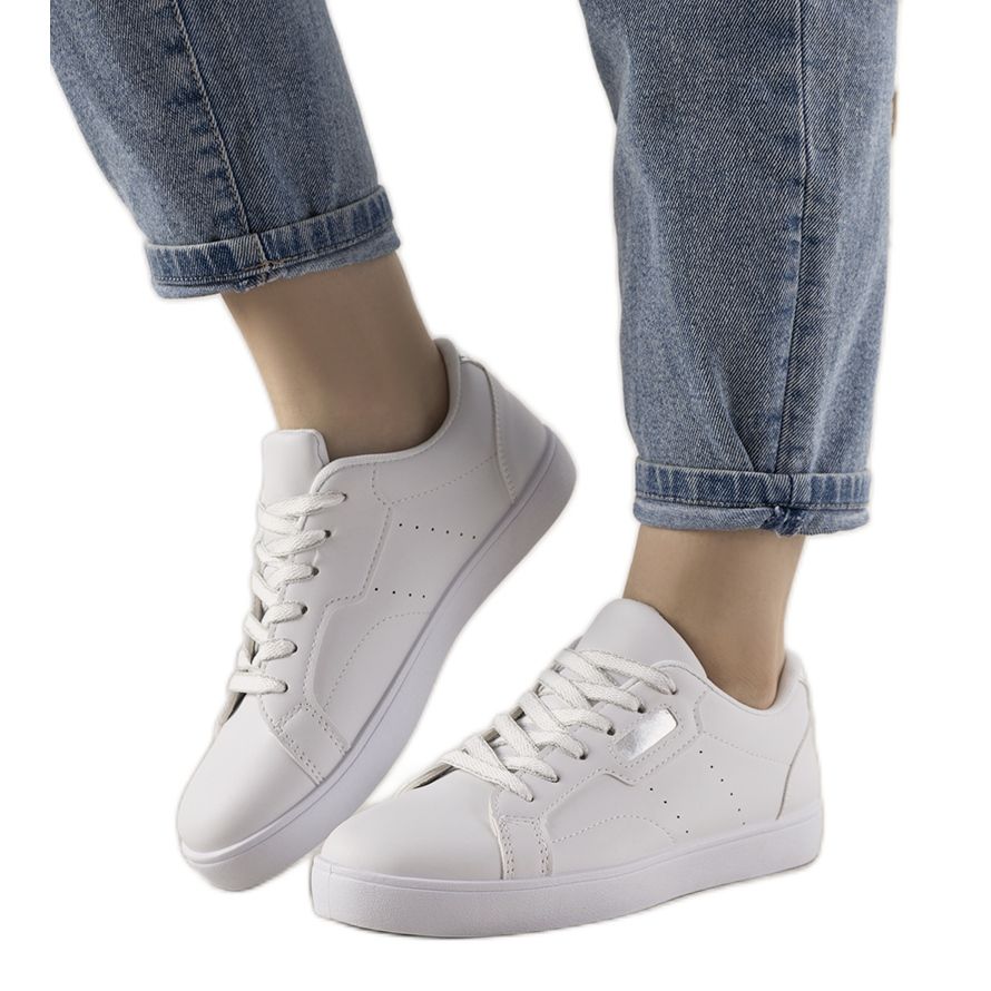 Diese Sneaker eignen sich sowohl für lässige Outfits als auch für elegantere Styles. Durch ihre universelle weiße Farbe mit dezenten silbernen Akzenten passen sie zu praktisch allem. Ein weiterer Vorteil ist die Gummisohle, die für festen Halt sorgt, und die Innensohle aus Stoff, die den ganzen Tag über für Komfort sorgt.