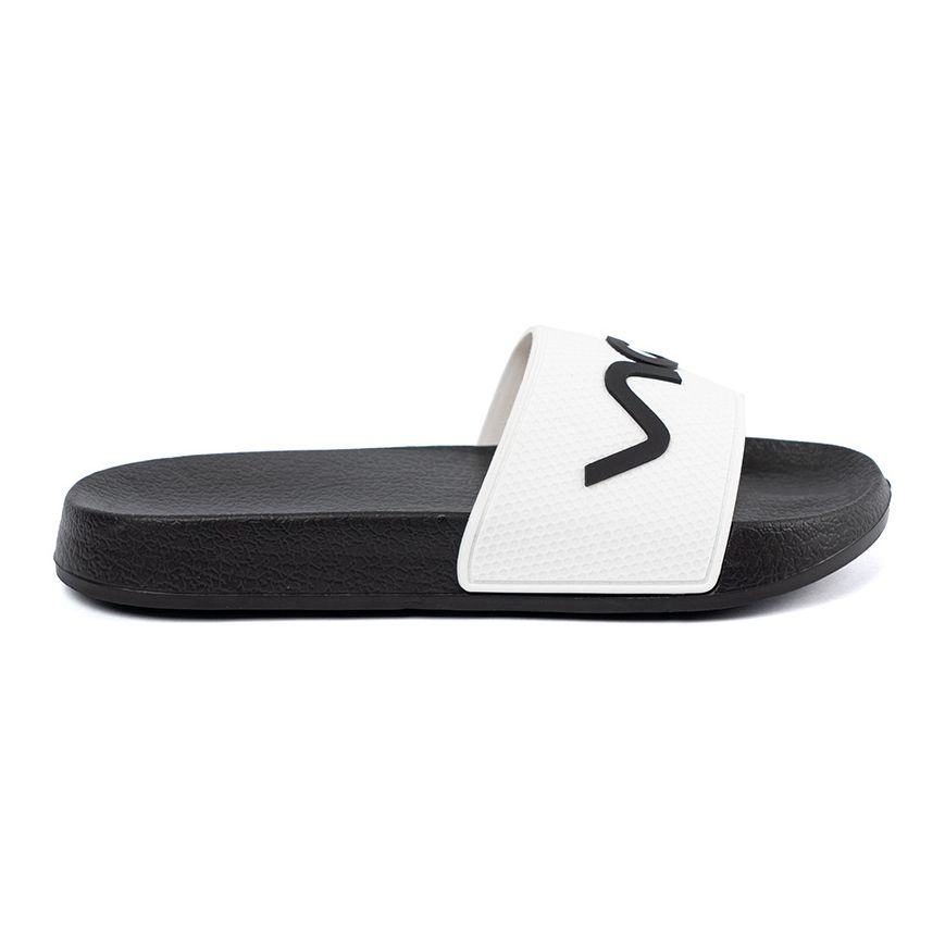 Shelvt zehenstegsandalen perfekt sind täglich nicht nur praktisch, sondern auch modisch. Weiße und weiße Farbe und eine minimalistische Inschrift verleihen ihnen Charakter und machen sie dazu, dass sie viele Styles-von lässiger bis eleganter entsprechen. Der ökologische Ledereinsatz bietet an einem Tag mit dem Tragen des Tages Komfort und eine solide Plastiksohle garantiert die Haltbarkeit.
