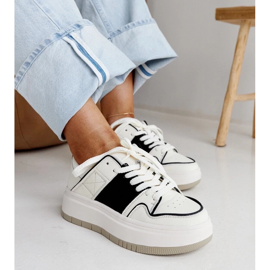 Weiße und schwarze Turnschuhe Abrar unterscheiden sich durch eine elegante runde Nase, die alle Subtilität und Harmonie verleiht. Dies ist ein ideales Angebot für Menschen, die nach Schuhen suchen, die sowohl Sport als auch ungezwungene Stylisationen entsprechen. In Kombination mit Ihren Lieblingsjeans oder einem leichten Kleid kreieren sie einen einzigartigen Look.