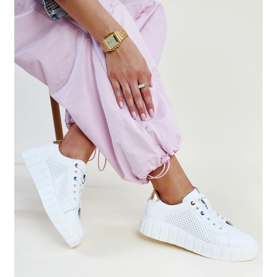 Ein zusätzlicher Vorteil der Zvonka -Turnschuhe sind offene Details, die ihrem Aussehen Leichtigkeit bringen. Weiß mit goldenen Akzentenschuhen werden im Frühling und Sommer sicherlich zu einem Lieblingsmodell. Jeder Kauf wird von einer Originalschachtel begleitet, die es auch zu einem idealen Geschenk macht. Wählen Sie weiße Leder -Zvonka -Turnschuhe und genießen Sie den Stil und den Komfort bei jedem Schritt!