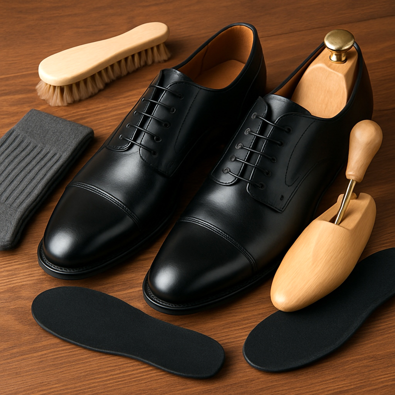 Schuhe müssen in einwandfreiem Zustand sein – auf Hochglanz poliert und ohne Gebrauchsspuren. Erwägen Sie, einen Schuhmacher für eine professionelle Reinigung aufzusuchen.