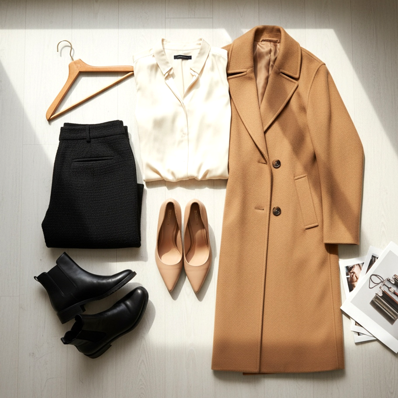 Monochrom bedeutet jedoch nicht, dass alle Elemente exakt den gleichen Farbton haben müssen. Im Gegenteil – unterschiedliche Töne einer Farbe verleihen dem Styling Tiefe. Beispielsweise ergeben hellbeige Schuhe, ein kamelfarbener Mantel und eine cremefarbene Bluse ein raffiniertes Farbspiel, das äußerst schick wirkt.