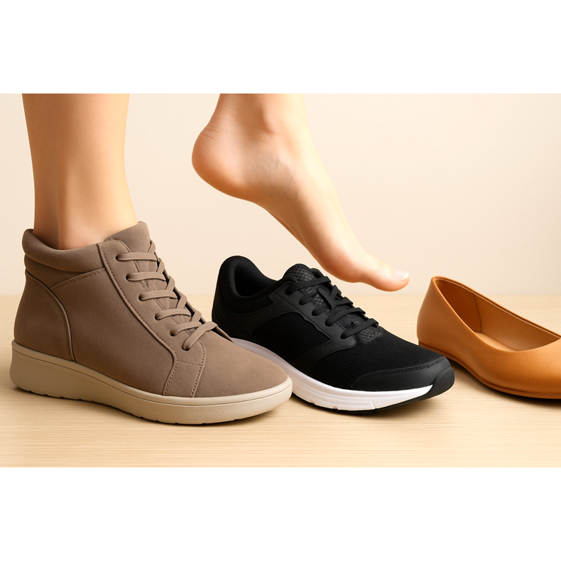 Ein Plattfuß zeichnet sich durch ein minimales oder fehlendes Längsgewölbe aus. Die gesamte Fußsohle hat Kontakt zum Boden. Menschen mit Plattfüßen benötigen Schuhe mit Fußgewölbeunterstützung und einer stabilen Struktur, die eine übermäßige Pronation verhindert. Ideal sind Modelle mit einer konturierten orthopädischen Innensohle und einer steiferen Zwischensohle. Es ist besser, Schuhe mit hohen Absätzen zu meiden, da diese die Symptome verschlimmern können. Sportschuhe mit Motion-Control-Technologie funktionieren gut.