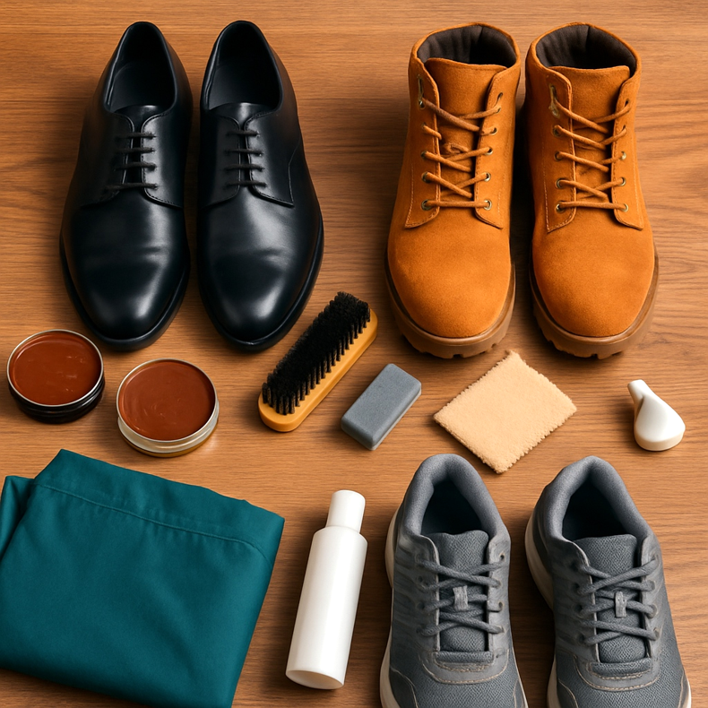 Kaufen Sie: Schuhcreme, Imprägniermittel, Bürsten (für Glatt- und Wildleder), Schuhspanner aus Holz, Schuhdeo, Zeitungspapier zum Trocknen.