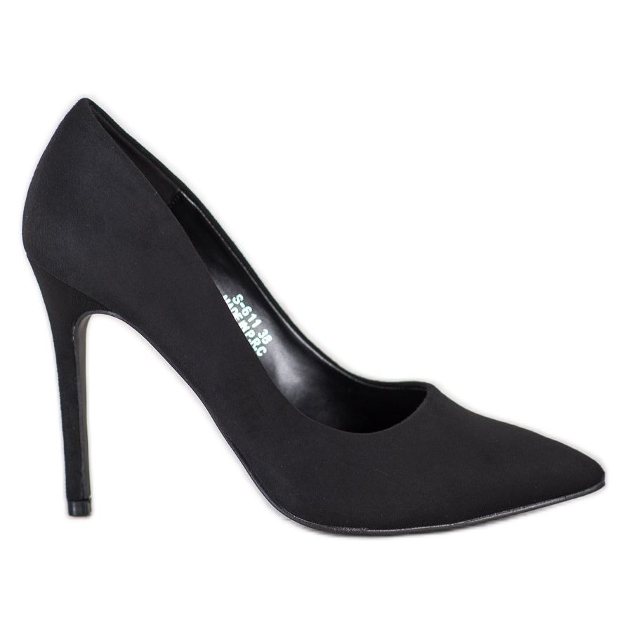 Das schwarze Wildleder-Finish verleiht ihnen einen einzigartigen Stil, und die spitze Zehenpartie macht die Beine optisch schlanker und verleiht jedem Styling Subtilität und Weiblichkeit. Ein hoher Absatz von 10,5 cm betont nicht nur die Figur, sondern verleiht auch Selbstbewusstsein. Damen-High-Heels von Renda bestehen aus hochwertigen Materialien, darunter: ökologisches Leder, das sie umweltfreundlich und gleichzeitig langlebig und pflegeleicht macht.