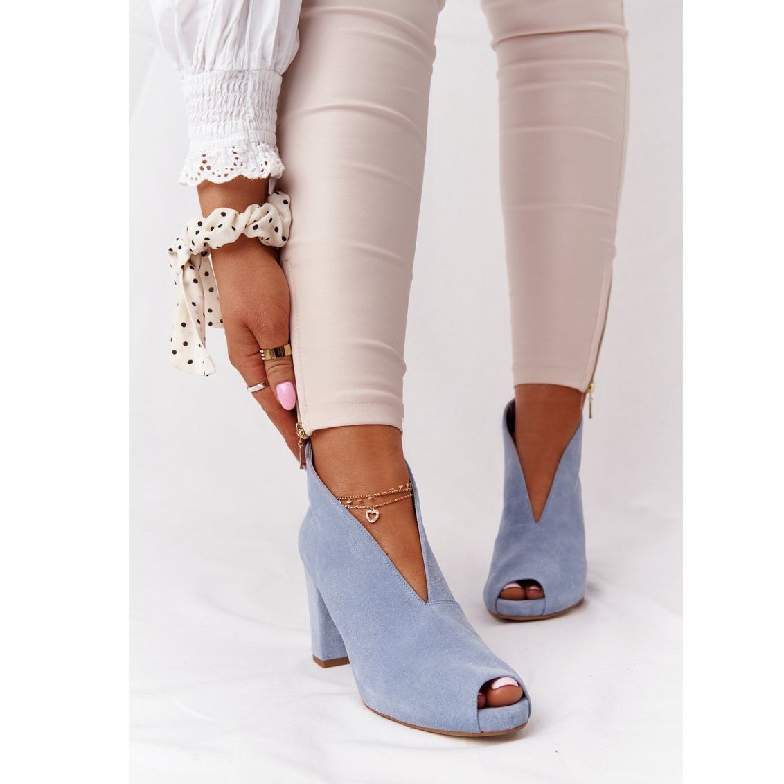 Details: Wildleder Booties auf einem Pfosten mit einem Schnitt Exquisite 1243 Blue blau