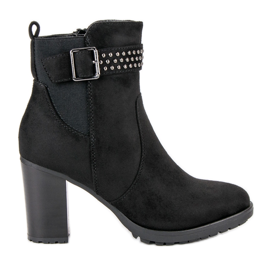 Entdecken Sie Eleganz und Komfort mit schwarzen Wildleder-Stiefeletten mit hohen Absätzen der Marke Super Me. Diese stilvollen Damenschuhe vereinen hochwertige Verarbeitung und modisches Design, das jedem Styling Klasse verleiht.