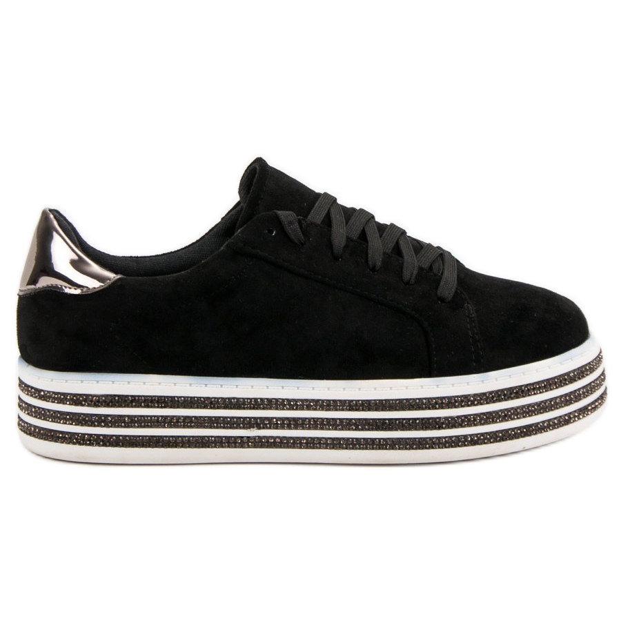 Wir präsentieren Creepers aus Wildleder mit Kristallen in tiefem Schwarz, die sportlichen Stil perfekt mit Eleganz verbinden. Diese einzigartigen Schuhe sind die perfekte Wahl für Frauen, die jeden Tag modisch aussehen möchten, ohne auf Komfort zu verzichten. Dank ihrer leichten Konstruktion und einer dicken 4 cm hohen Sohle genießen Sie Komfort bei langen Spaziergängen.
