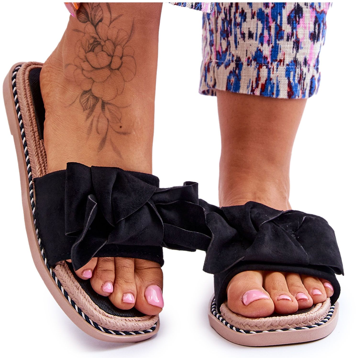 Inna marka Wildleder Damenhausschuhe mit Schleife Schwarzer Bernstein