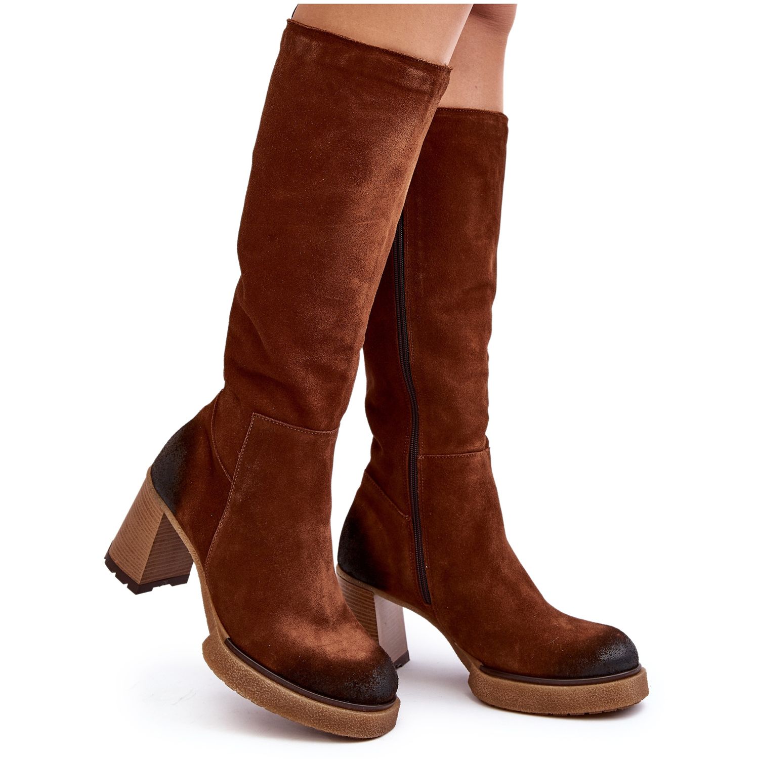 Details: Wildleder-Damenstiefel mit hohem Absatz über dem Knie Lemar Brown Ceraxa braun