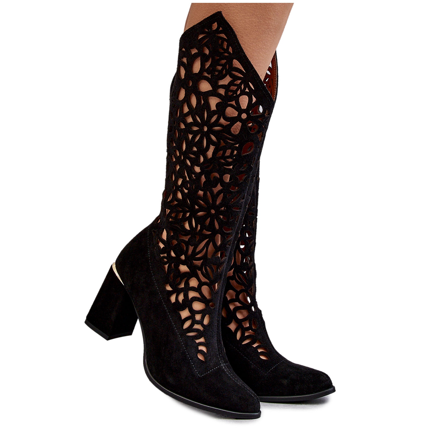 Entdecken Sie Eleganz und Stil mit Wildleder -Openwork -Stiefeln Lewski Schuhe 3234 in Schwarz. Diese äußerst effektiven Stiefel, die auf die Knie greifen, sind die perfekte Ergänzung zu den Kleiderschränken aller Frauen. Das Openwork -Obermaterial verleiht ihnen einen einzigartigen Charakter, und der Torschütze im Spitz fügt eine einzigartige Klasse hinzu.
