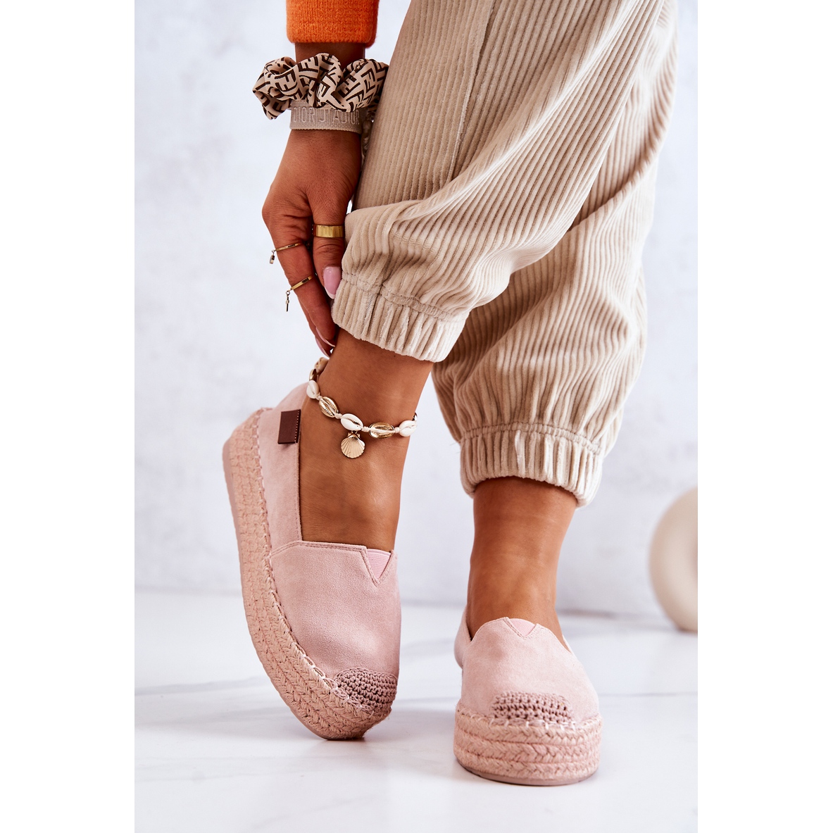 Entdecken Sie den neuesten Hit unter den Sommermode-Akzenten – rosafarbene FB2-Slip-On-Espadrilles. Aus hochwertigem Öko-Wildleder gefertigt, zeichnen sich diese aufsehenerregenden Espadrilles nicht nur durch ihr elegantes Aussehen, sondern auch durch ihren außergewöhnlichen Tragekomfort aus. Eine weiche Innensohle aus Stoff und ein Absatz aus ökologischem Leder sorgen dafür, dass Ihre Füße den ganzen Tag über bequem sind.