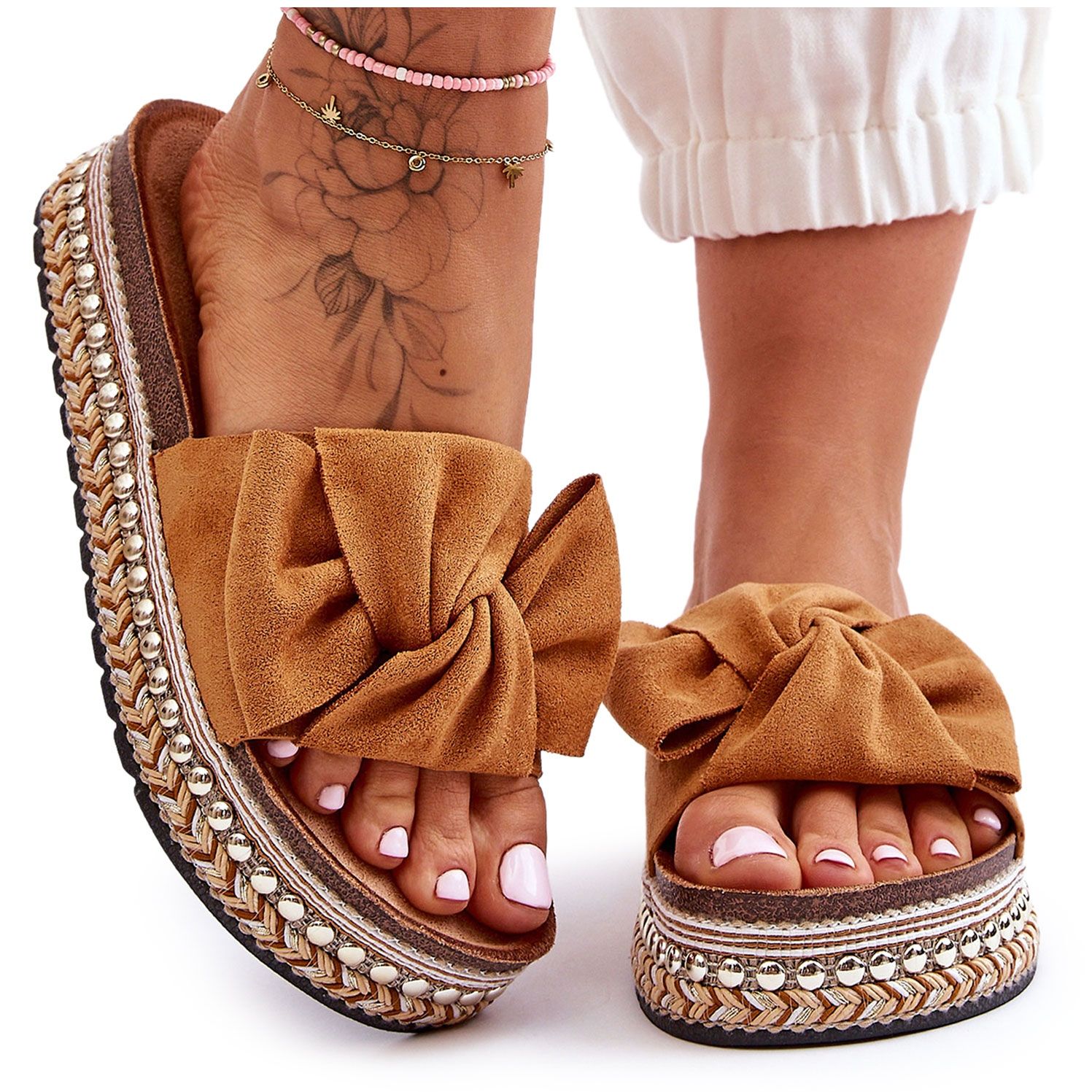 Suchen Sie zehenstegsandalen, die Eleganz, Komfort und originelles Design vereinen? Wählen Sie die Camel Lauria Wildlederpantoffeln für Damen mit Schleife und genießen Sie die ganze Saison über Komfort und einen stilvollen Look!